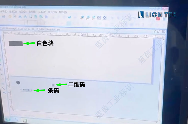 噴印流程如圖所示,要在采樣管側(cè)面先噴上方形的白墨色塊,噴印好之后再噴印上條碼,頂部噴印圓形白墨塊再噴二維碼,三個部分的噴印都是通過UV噴碼機完成
