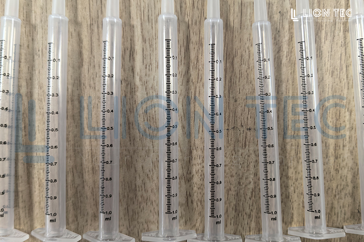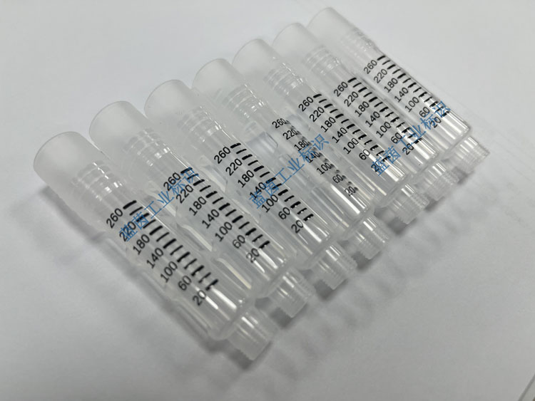 給客戶打樣的胰島素推桿套管在上面UV?打印刻度,UV噴碼機(jī)打出來的效果清晰?飽滿,附著力好,可以集成自動(dòng)化設(shè)備實(shí)現(xiàn)流水線噴碼作業(yè),高速高效噴碼。?