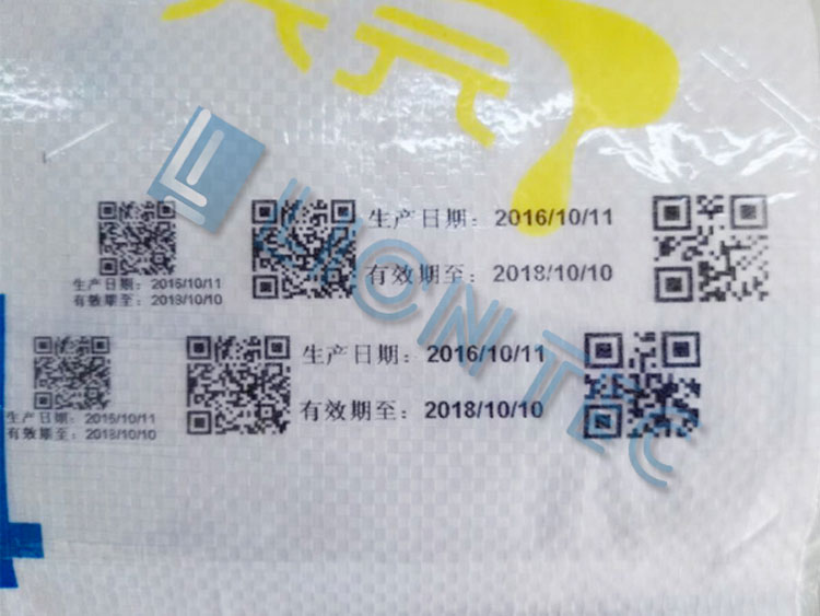 飼料編織袋UV噴碼機(jī)可噴印批號、生產(chǎn)日期、保質(zhì)期、公司信息等多行固定內(nèi)容以及可變數(shù)據(jù)、二維碼等。
