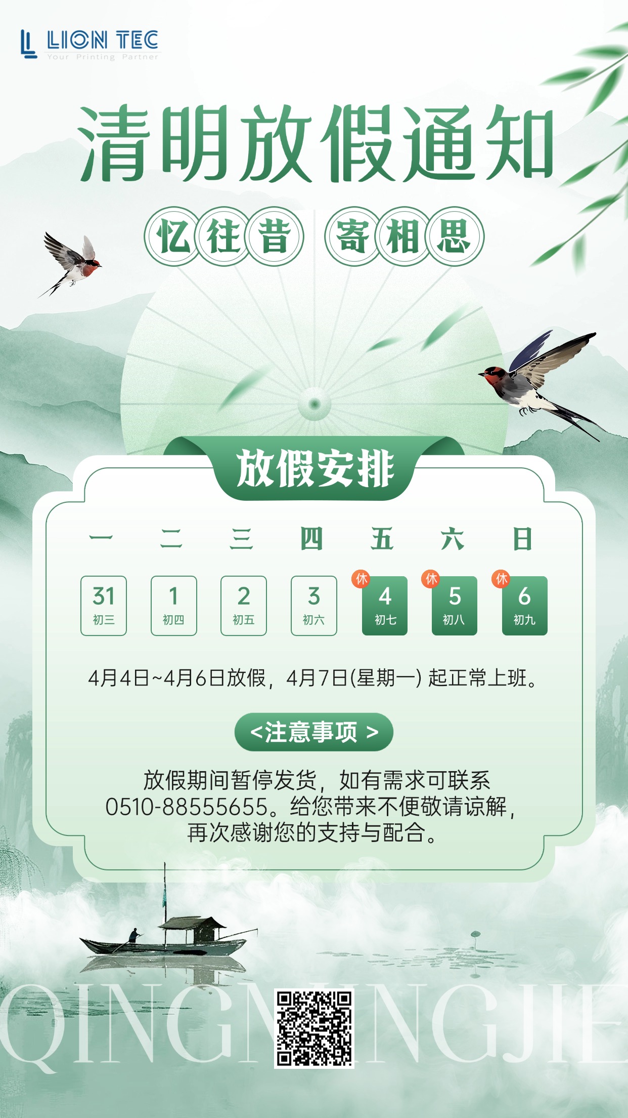 人間四月芳菲盡,春風(fēng)落日寄哀思。清明,是慎終追遠(yuǎn)的時節(jié),是對親人的思念,更是文化的傳承。清明節(jié)即將到來,根據(jù)國家法定節(jié)假日規(guī)定,噴碼機廠家藍(lán)茵現(xiàn)將 2025 年清明節(jié)放假安排通知如下: