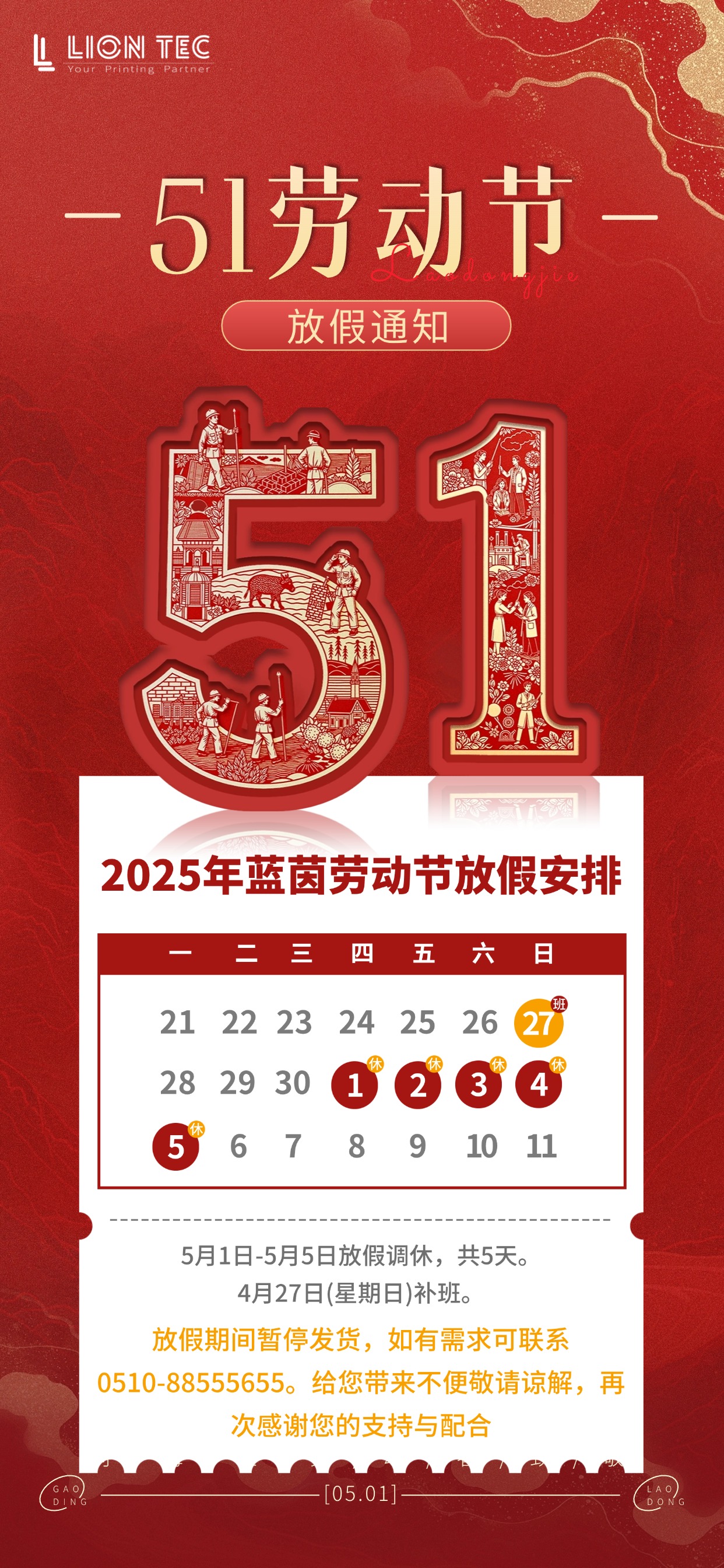 四月芳菲盡,五月絮升華追夢山海間,追光星辰里五一·勞動節(jié)即將到來,根據(jù)國家法定節(jié)假日規(guī)定,噴碼機廠家-藍(lán)茵現(xiàn)將2024年勞動節(jié)放假安排通知如下: