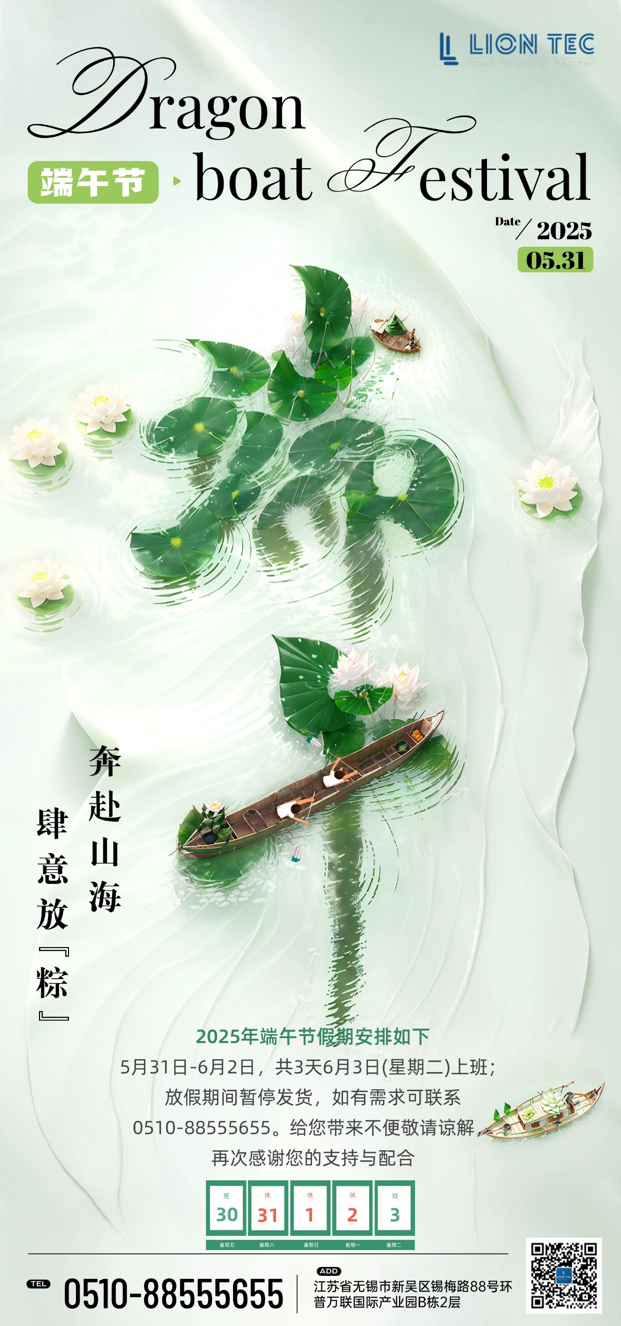 花開半夏,雨落成詩,端午已至,祝君安康!五月初五端午節(jié)即將到來,根據(jù)國家法定節(jié)假日固定,噴碼機廠家-藍(lán)茵現(xiàn)將2025年端午節(jié)放假安排通知如下: