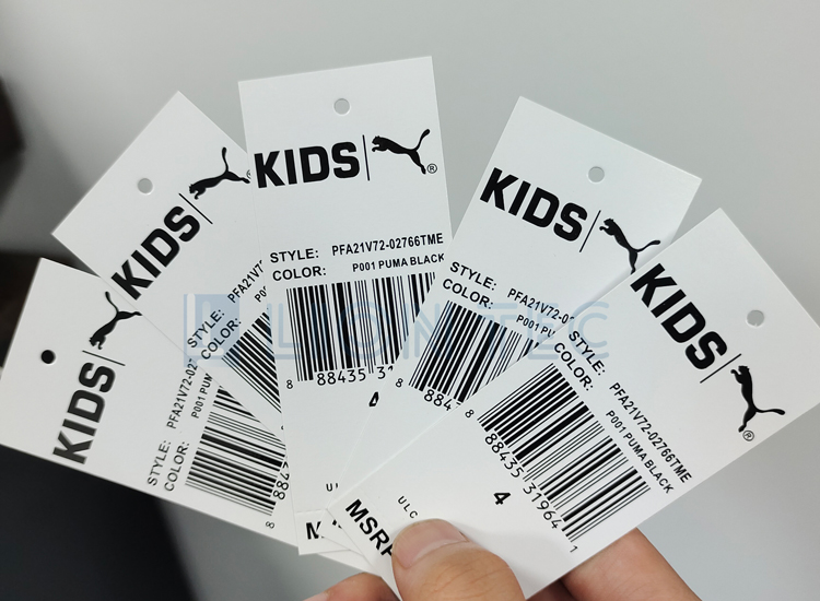 衣服白卡紙吊牌產(chǎn)品信息UV噴碼機(jī)噴印效果