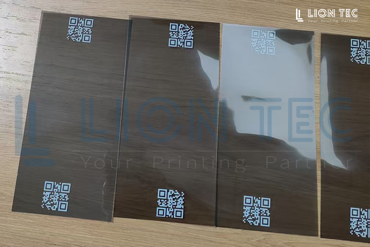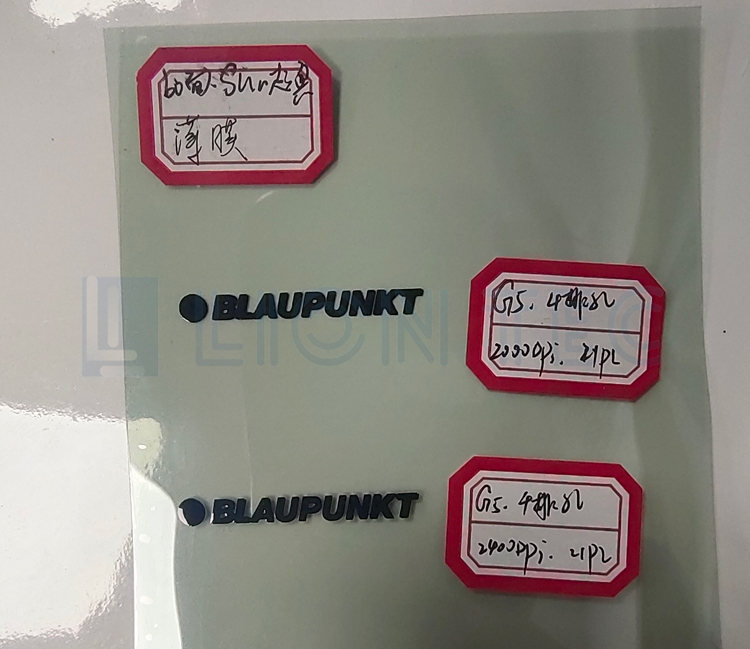 某上市公司車企的聚丙烯(PP)材質(zhì)樣品汽車顯示屏膜通過藍(lán)茵uv噴碼機(jī)打樣的效果